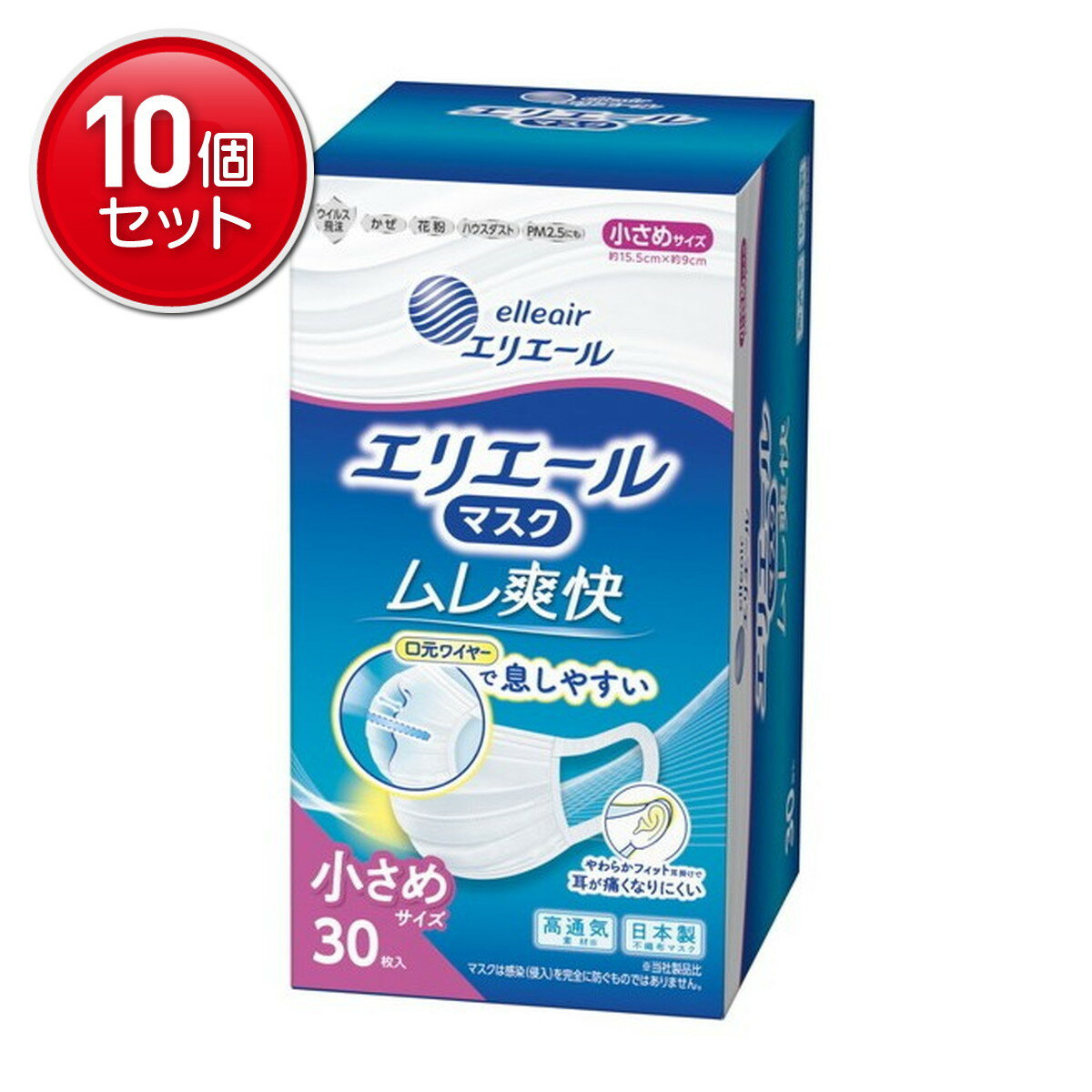 【最安挑戦!まとめ買い×10点セット】大王製紙 エリエール マスク ムレ爽快 小さめサイズ 30枚入・・・