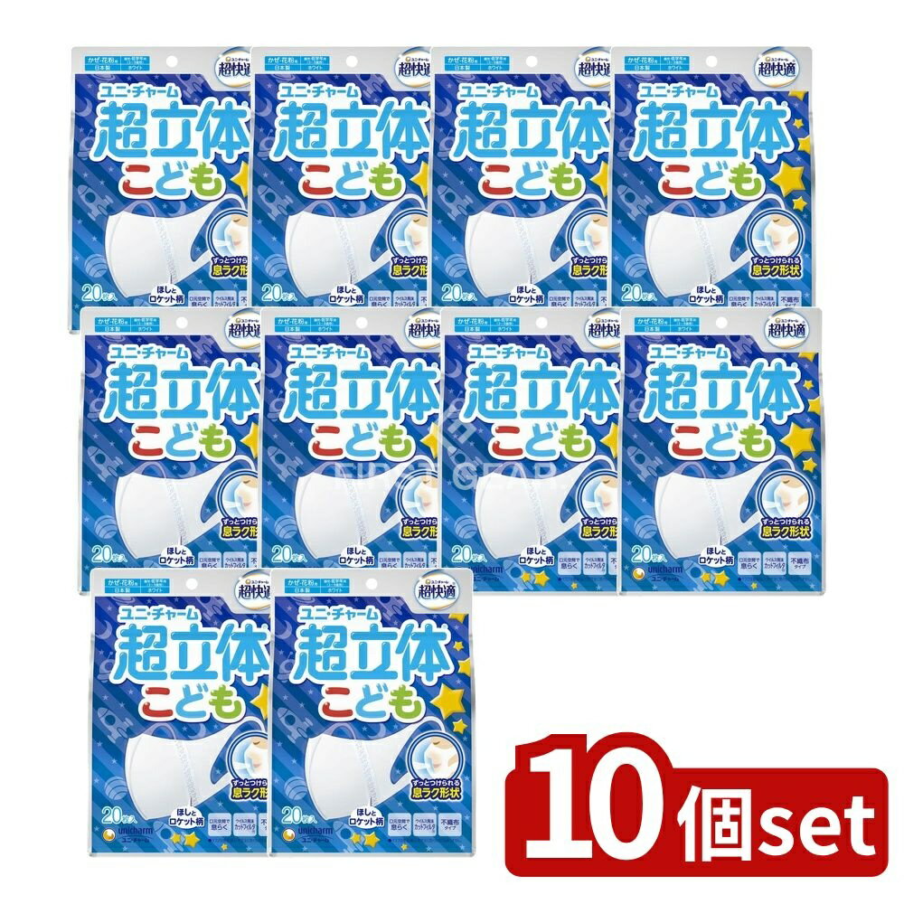 \レビュー特典有/【10個セット】 ユニ・チャーム 超立体マスクこども用ホワイト [単品内容量/20・・・