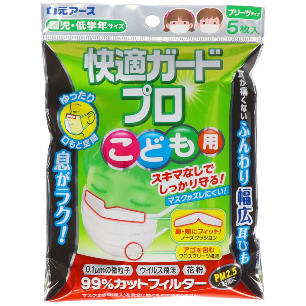 \レビュー特典有/白元アース 快適ガードプロ プリーツタイプ こども用 [単品内容量/5枚] | 白・・・