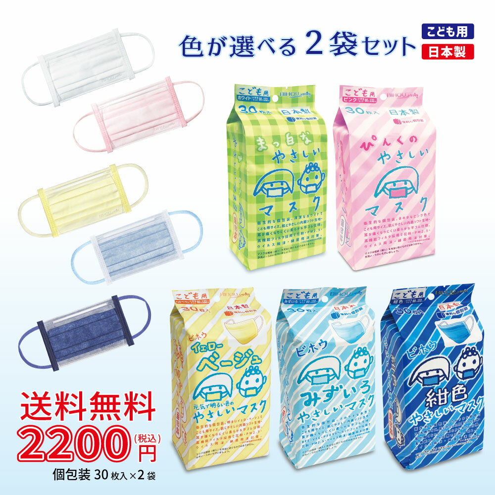 【選べる2袋セット】こども用マスク 30枚入〈送料無料〉【美保 BIHOU 日本製 個包装 不織布マ・・・