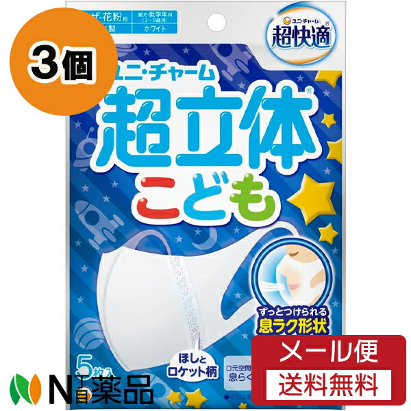 【メール便送料無料】ユニ・チャーム 超快適 超立体 マスク こども用 星とロケット柄 (5枚入) 3・・・