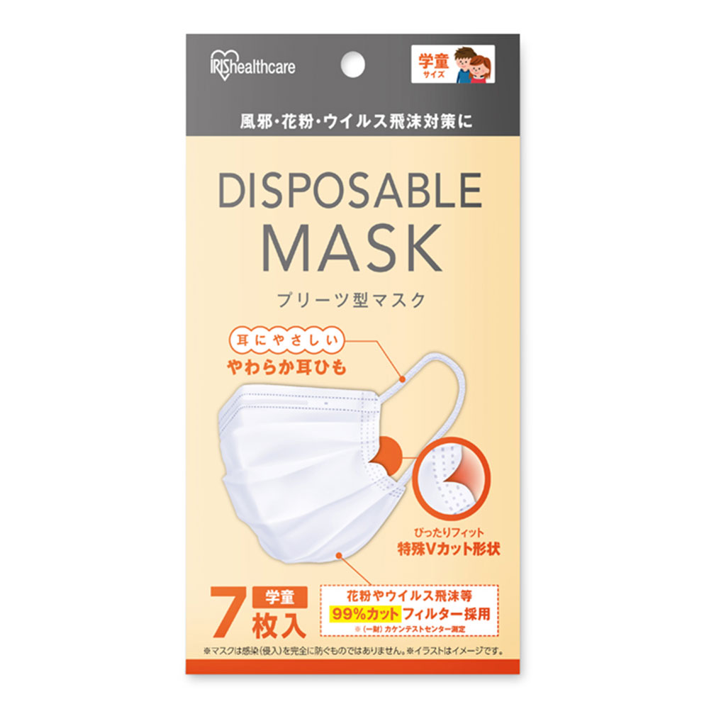 ディスポーザブル プリーツマスク 学童 ホワイト 20PN-7PG 1個(7枚入) アイリスオーヤマ・・・