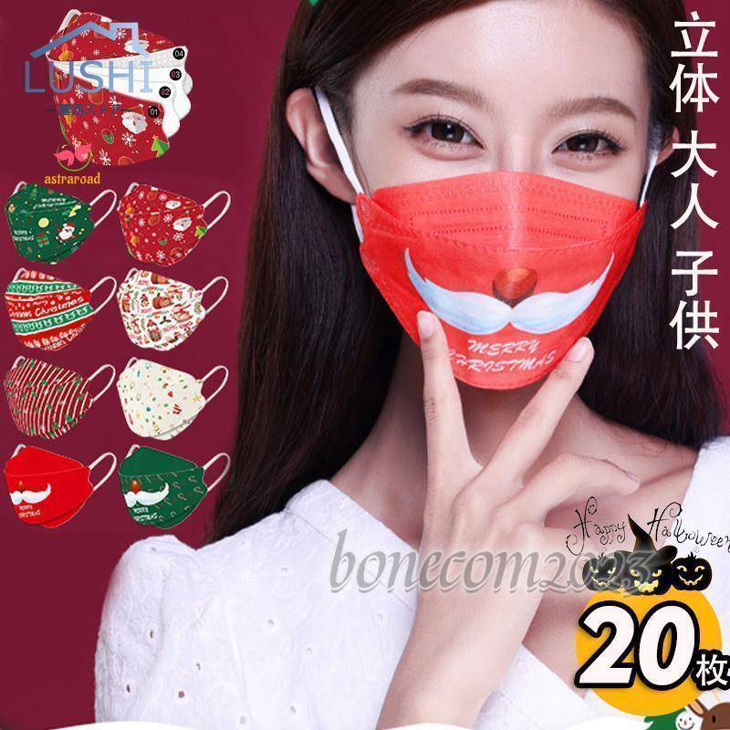 マスク 20枚入り 不織布 カラー クリスマス柄 大人 子供 使い捨て 柄物 可愛い お洒落 4層構・・・