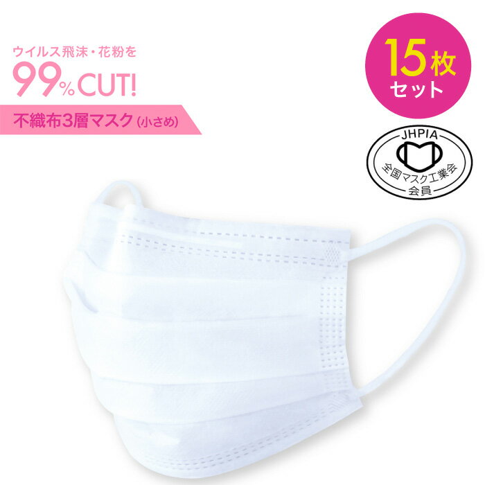 【在庫あり】不織布3層マスク 小さめ 15枚入り(5枚入×3個) マスク 全国マスク工業会 会員 使・・・