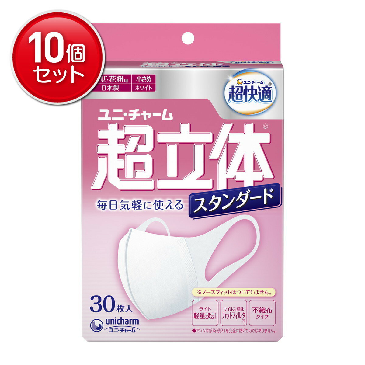 【最安挑戦!まとめ買い×10点セット】ユニ・チャーム 超快適 超立体マスク スタンダード 小さめサイ・・・