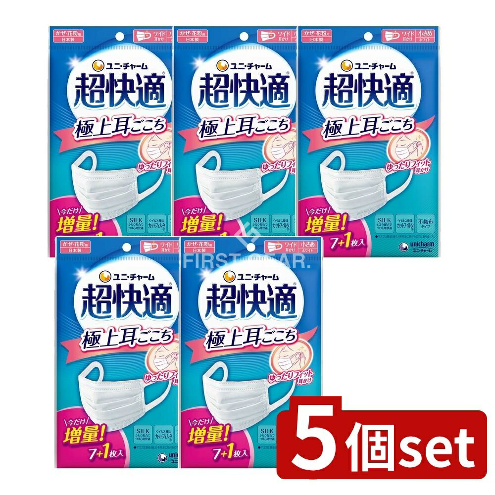 \レビュー特典有/【5個セット】 ユニ・チャーム 超快適マスクプリーツタイプ小さめ [単品内容量/7・・・