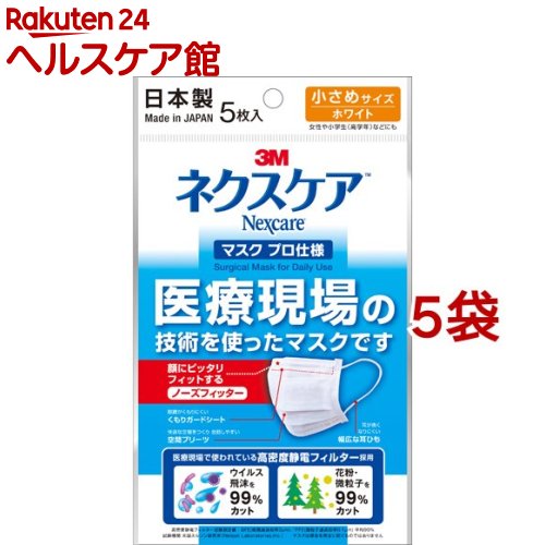 3M ネクスケア マスク プロ仕様 小さめサイズ ホワイト(5枚入*5袋セット)【ネクスケア】[マス・・・