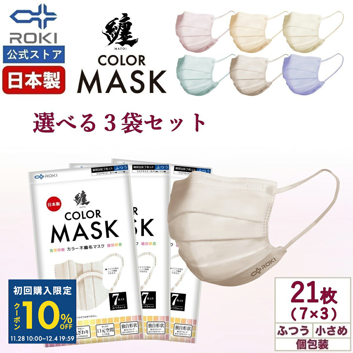 【初回限定10%OFFクーポン 12/4 20時まで】不織布 マスク カラー 日本製 選べる6色 3・・・