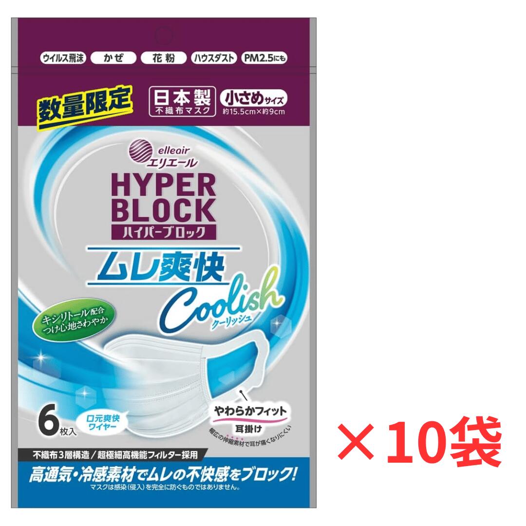 (日本製 不織布)エリエール ハイパーブロックマスク ムレ爽快クーリッシュ 小さめサイズ 6枚入り×・・・