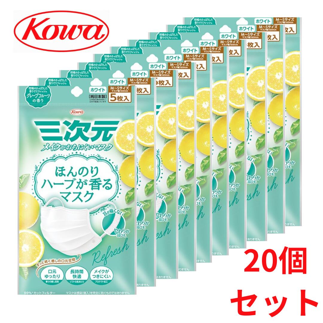興和 ほんのりハーブが香るマスク グレープフルーツの香り ホワイト 5枚 【20個セット 5枚入り ・・・