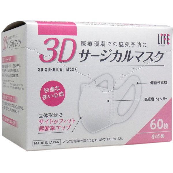 マスク 不織布 3Dサージカルマスク 小さめ 60枚入 日本製・・・