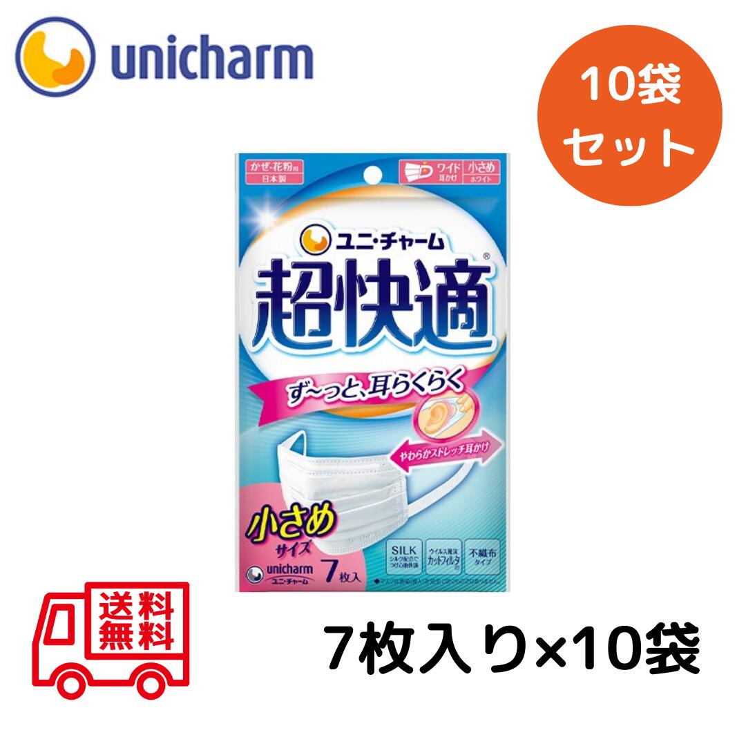 ユニ・チャーム 超快適 マスク プリーツタイプ 小さめ サイズ 7枚 【10個セット】 不織布 超快・・・