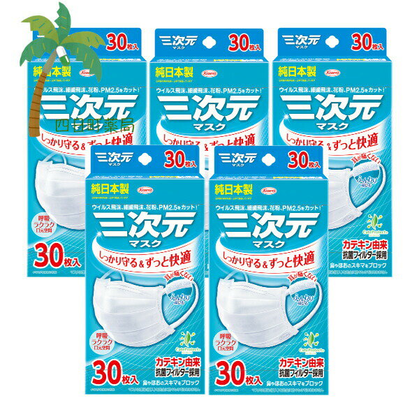 【興和】三次元マスク すこし小さめ M?Sサイズ ホワイト 30枚 [5個セット] 純日本製 耳が痛・・・