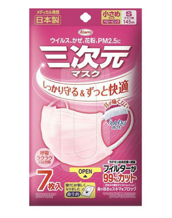 興和 三次元マスク 小さめ Sサイズ ベビーピンク 7枚入り ウイルス飛沫 花粉からしっかり守る メ・・・