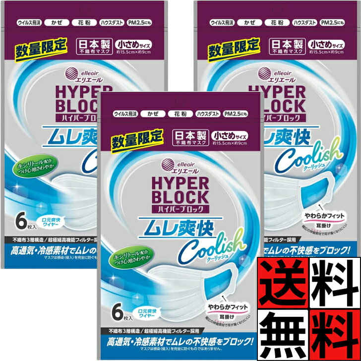 送料無料 エリエール マスク ムレ爽快 小さめ ハイパーブロックマスク 日本製 不織布 花粉 風邪 耳掛け ウイルス ハウスダスト 通気 不快感 冷感 長時間 耳 口元 コロナ クーリッシュ