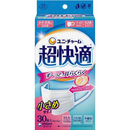 超快適マスク 極上耳ごこち かぜ・花粉用 ホワイト 小さめサイズ 30枚入 【unicharm ユニ・・・