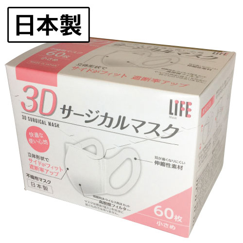 マスク 不織布 日本製 3Dサージカルマスク(60枚) 小さめ 平和メディク・・・