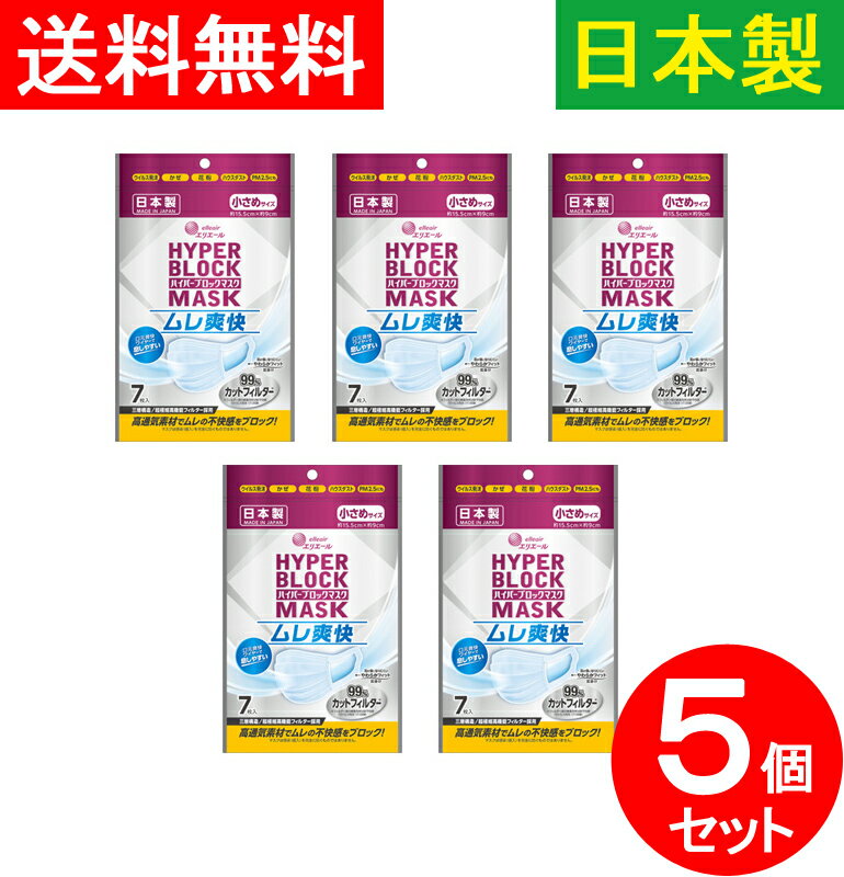 【5個セット】 大王製紙 ハイパーブロックマスク ムレ爽快 小さめサイズ7枚 マスク 夏用 ホワイト・・・