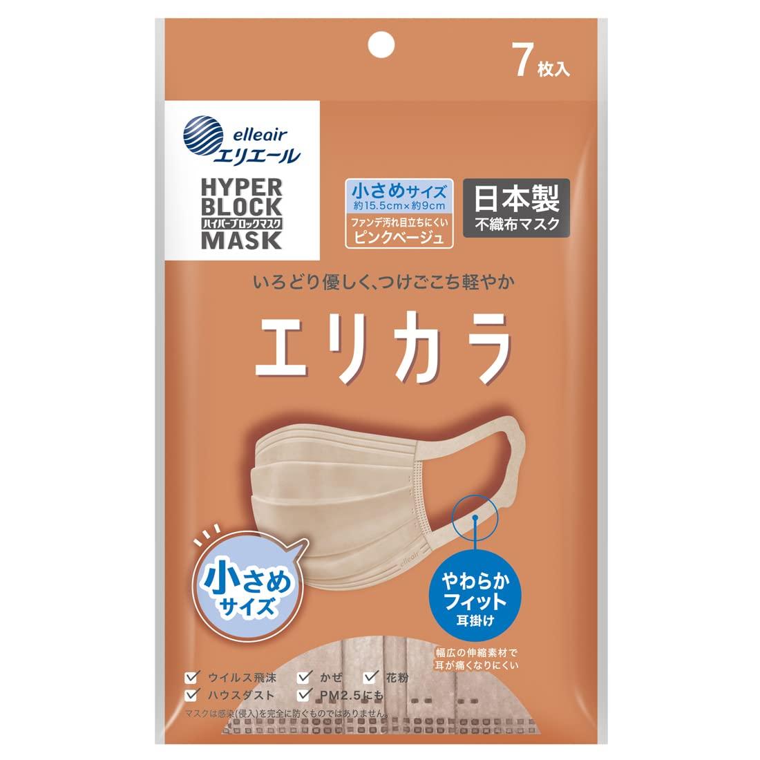 エリエール (日本製 不織布) Zutto(ハイパーブロックマスク) エリカラ ピンクベージュ 小さ・・・