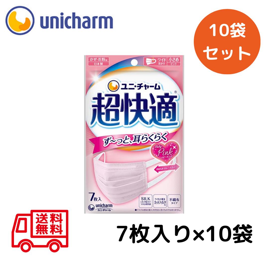 ユニ・チャーム 超快適 マスク プリーツタイプ ピンク 小さめ サイズ 7枚 【10個セット】 不織・・・