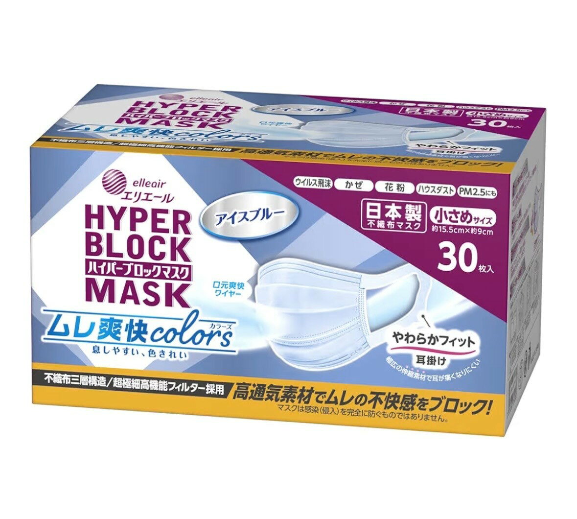 日本製 不織布 小さめ マスク ハイパーブロック カラータイプ ブロック 性能 ムレを防ぐ 高次元