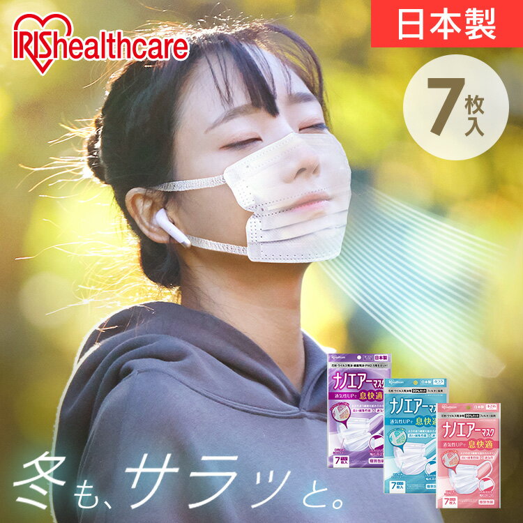 ナノエアーマスク 7枚入?PK-NI7S?小さめサイズ 【日本製】 通気性UPで息快適 個別包装 ふんわりやさしい幅広耳ひも マスク 大人用 (使い捨て不織布マスク 個包装マスク )