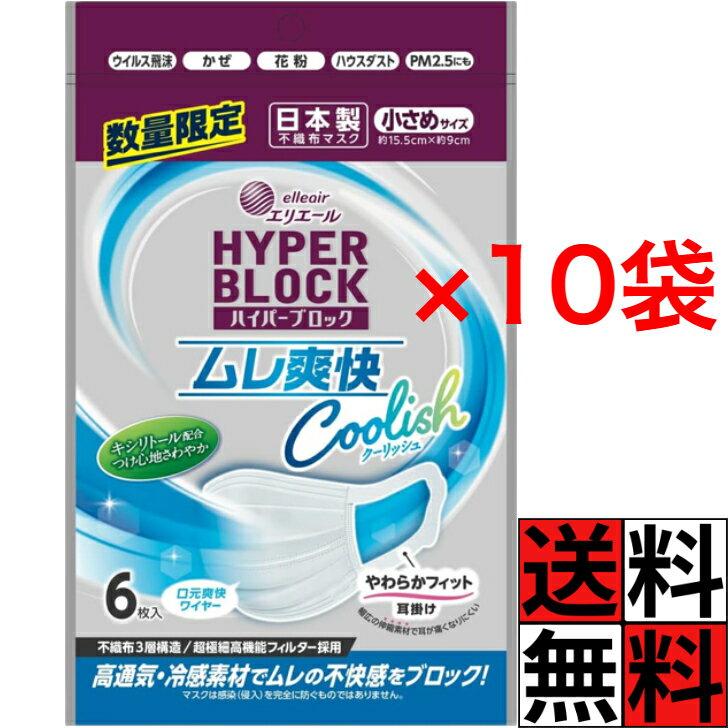 送料無料 エリエール マスク ムレ爽快 小さめ ハイパーブロックマスク 日本製 不織布 花粉 風邪 耳掛け ウイルス ハウスダスト 通気 不快感 冷感 長時間 耳 口元 コロナ クーリッシュ