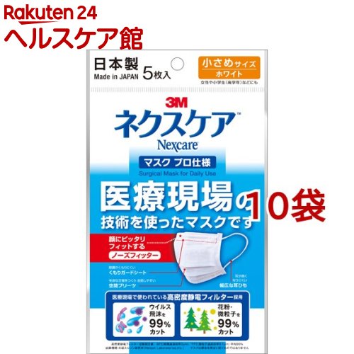 3M ネクスケア マスク プロ仕様 小さめサイズ ホワイト(5枚入*10袋セット)【ネクスケア】[マ・・・