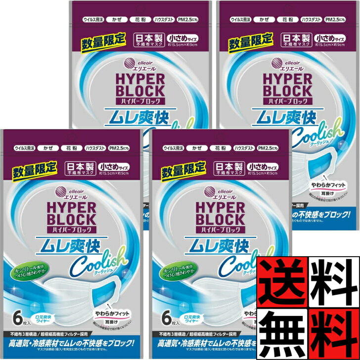 送料無料 エリエール マスク ムレ爽快 小さめ ハイパーブロックマスク 日本製 不織布 花粉 風邪 耳掛け ウイルス ハウスダスト 通気 不快感 冷感 長時間 耳 口元 コロナ クーリッシュ