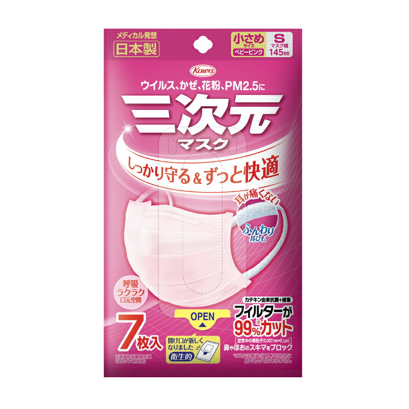 【5個セット】【純日本製】コーワ 三次元 マスク すこし小さめ M〜Sサイズ 7枚入り×5個セット ・・・