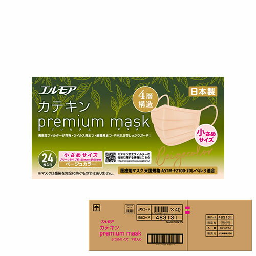 エルモア カテキン プレミアムマスク ベージュ 小さめサイズ 24枚 (12箱入) プリーツ カテキ・・・