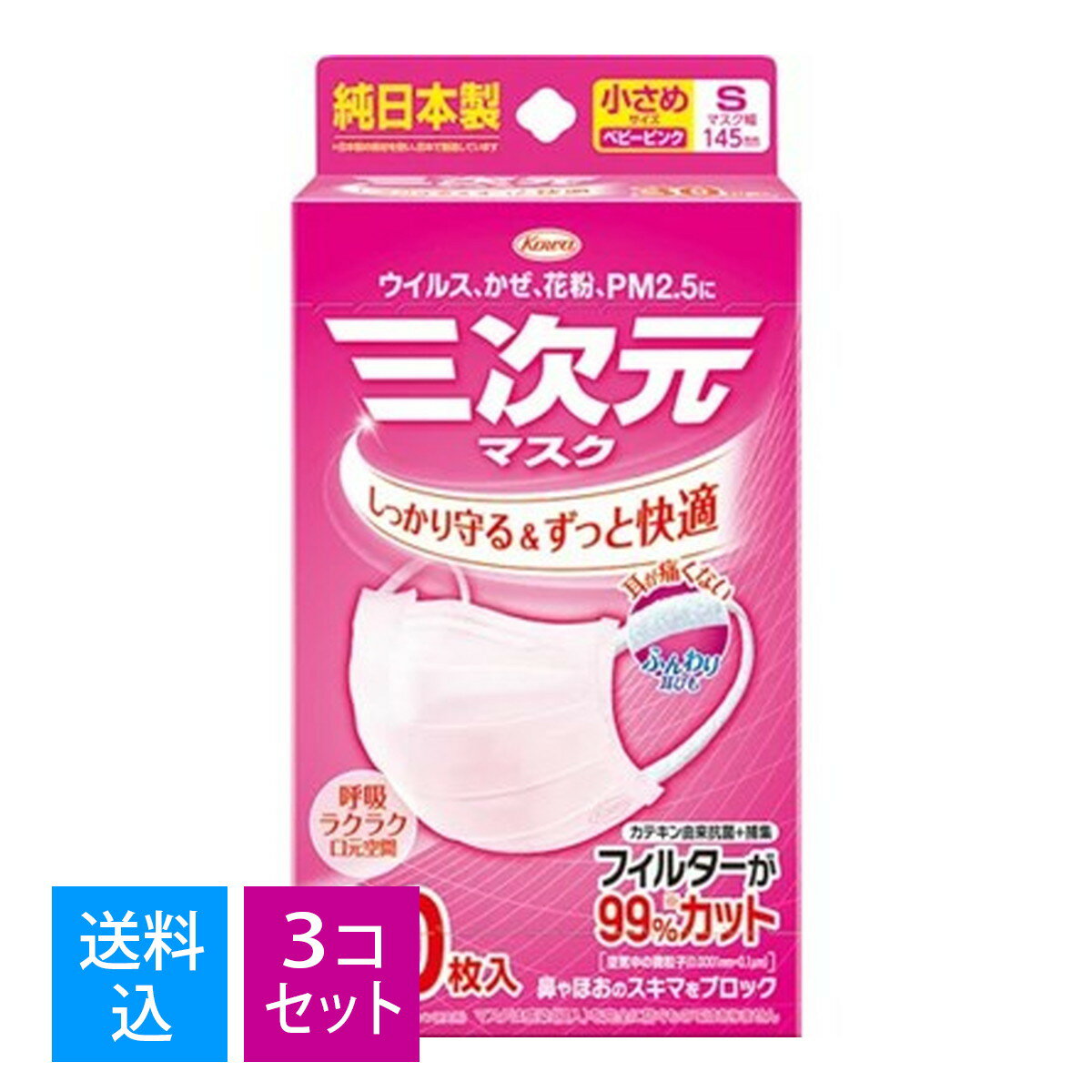 【送料込・まとめ買い×3個セット】興和 Kowa 三次元マスク 小さめ Sサイズ ピンク 30枚入・・・