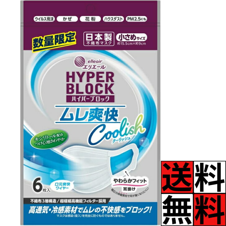 送料無料 エリエール マスク ムレ爽快 小さめ ハイパーブロックマスク 日本製 不織布 花粉 風邪 耳掛け ウイルス ハウスダスト 通気 不快感 冷感 長時間 耳 口元 コロナ クーリッシュ