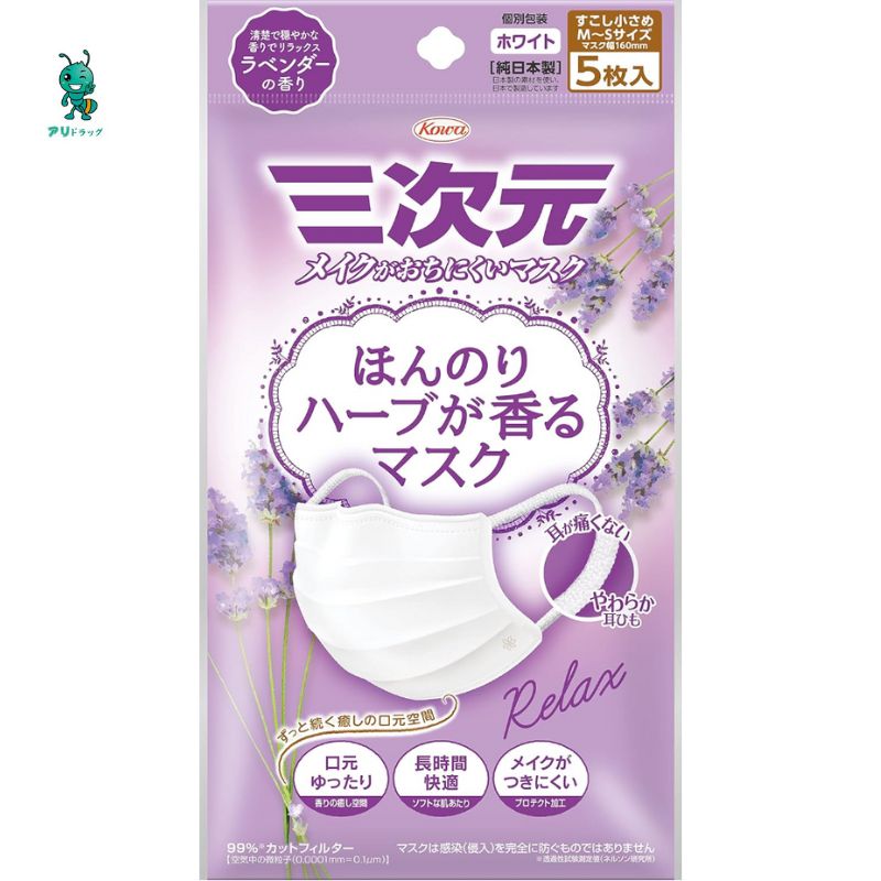 興和 三次元 ほんのりハーブが香るマスク ラベンダーの香り すこし小さめ M~Sサイズ ホワイト (5枚) マスク ウイルス 花粉 日本製