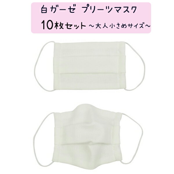 ≪10枚セット≫白ガーゼ プリーツマスク ~大人小さめサイズ~ ハンドメイド 日本製 マスク ガーゼ・・・