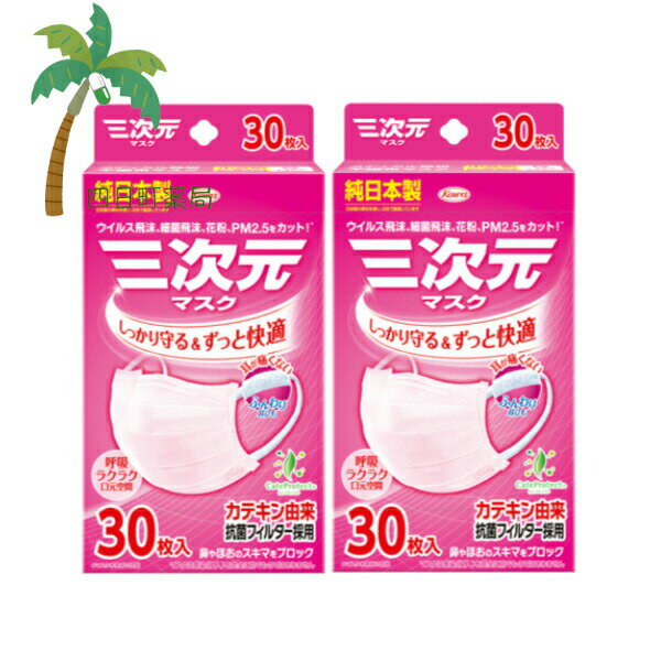 【興和】三次元マスク 小さめ Sサイズ ベビーピンク 30枚 [2個セット] 純日本製 耳が痛くない・・・