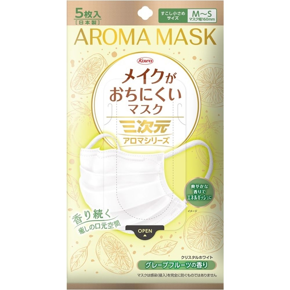 \レビュー特典有/興和 三次元メイクがおちにくいマスクアロマ すこし小さめMSサイズ グレープフルー・・・