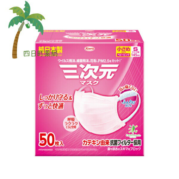 三次元マスク(30枚入) 小さめSサイズ ピンク 原料から製造まですべてが純日本製の不織布プリーツマスク 大人用マスク ちいさめ コーワ (使い捨て不織布マスク)