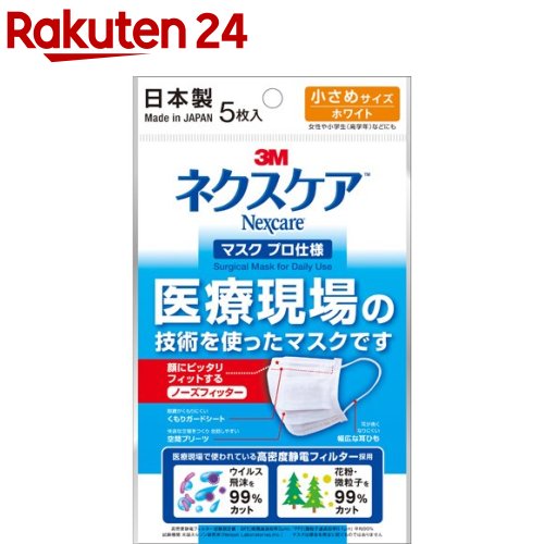 マスク 日本製 医療現場 ウイルス 花粉 99%カット / ネクスケア / 3M ネクスケア マスク プロ仕様 小さめサイズ ホワイト