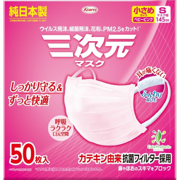【20個セット】 三次元マスク小さめSサイズピンク50枚 興和 マスク ベビーピンク 備蓄 使い捨て・・・