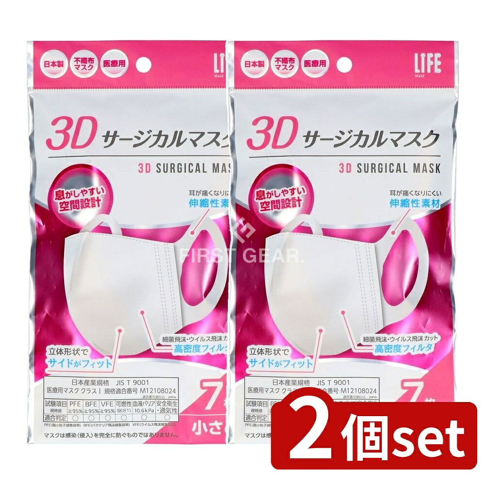\レビュー特典有/【2個セット】 平和メディク 3Dサージカルマスク小さめサイズ [単品内容量/7枚・・・
