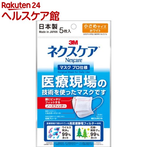マスク 日本製 医療現場 ウイルス 花粉 99%カット / ネクスケア / 3M ネクスケア マスク プロ仕様 小さめサイズ ホワイト