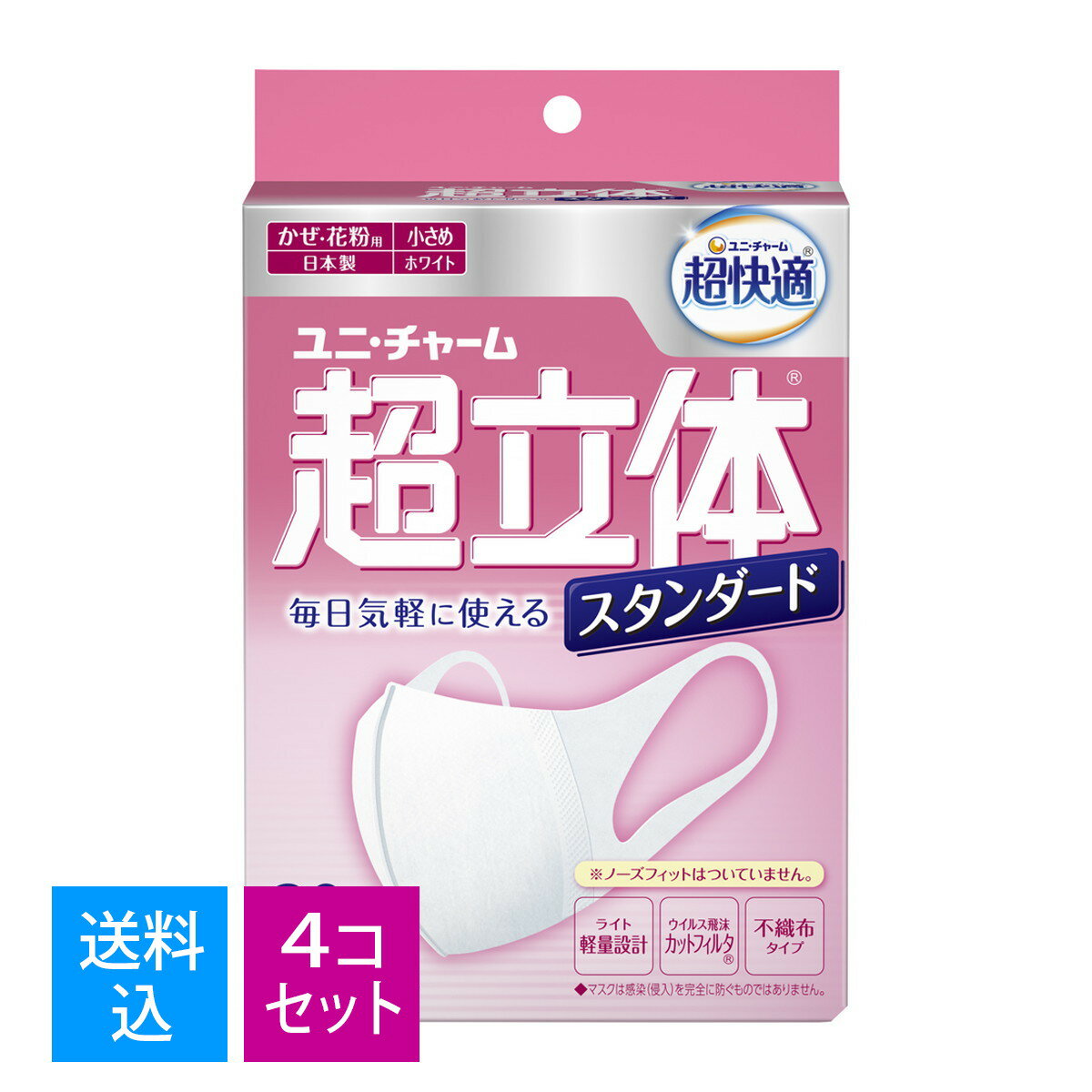 【送料込・まとめ買い×4個セット】ユニ・チャーム 超快適 超立体マスク スタンダード 小さめサイズ ・・・