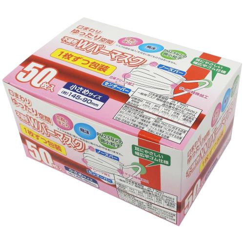 [全家協] マスク 不織布 立体 プリーツ 使い捨て 小さめ 個包装 50枚 箱入り ダブルバー で・・・