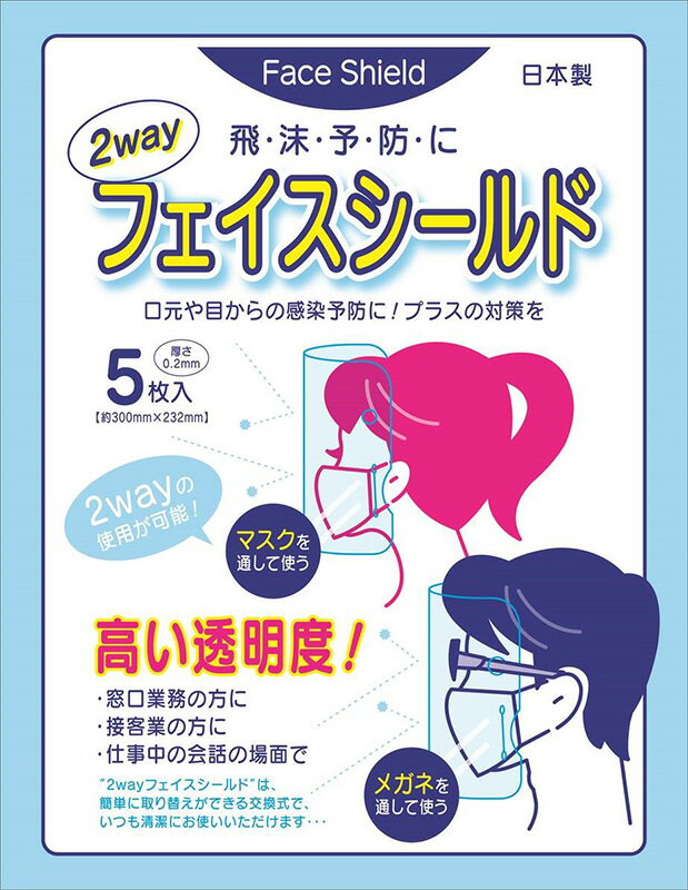 国産 2WAY フェイスシールド 5枚入り 飛沫対策 ウイルス対策 花粉対策 防塵 保護マスク 水洗・・・