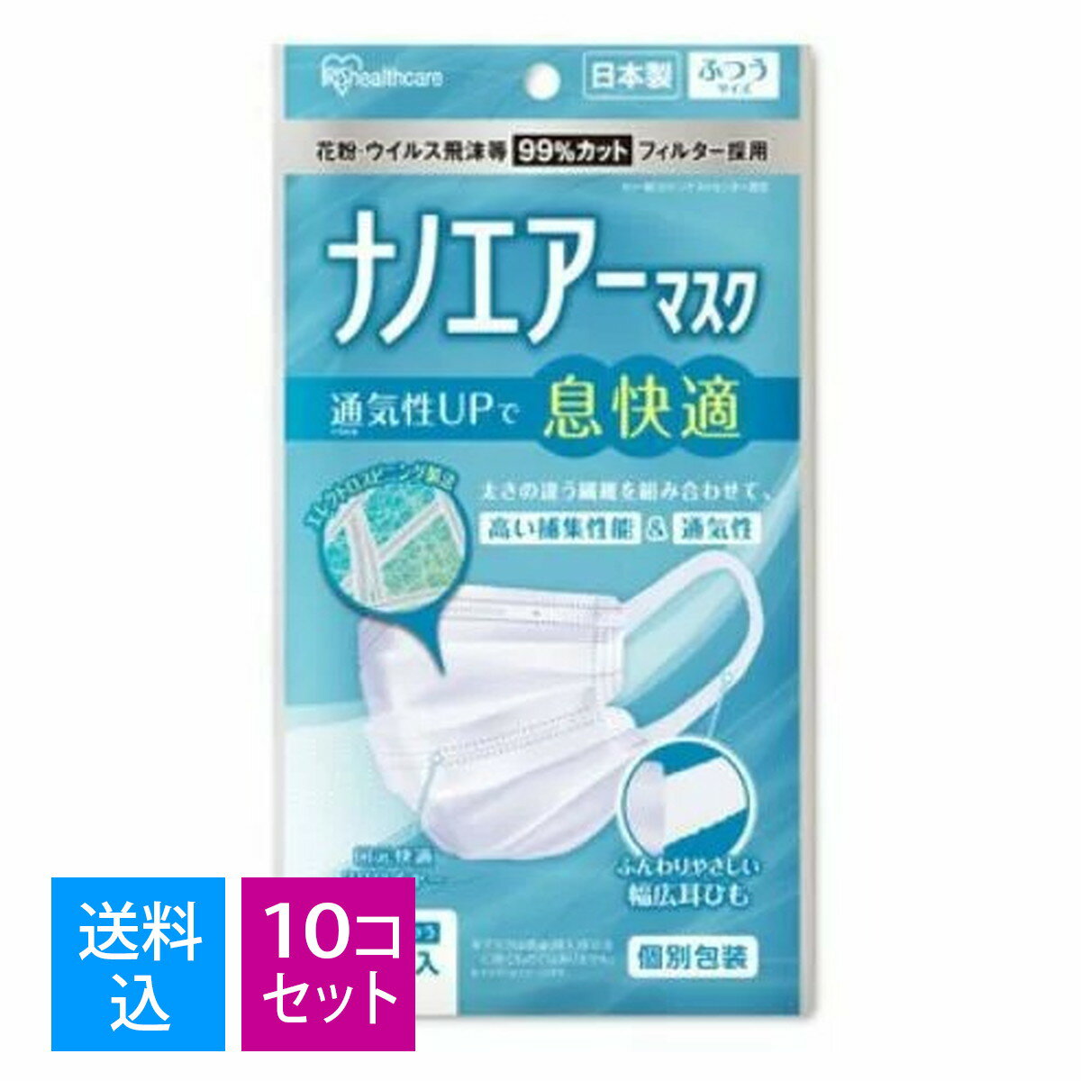 【送料込・まとめ買い7枚入×10個セット】アイリスオーヤマ ナノエアーマスク ふつうサイズ 7枚入 ・・・