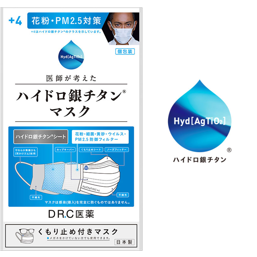 ハイドロ銀チタンマスク +4 DRC 医薬 日本製 不織布 マスク ハイドロギンチタン 花粉症 抗菌・・・