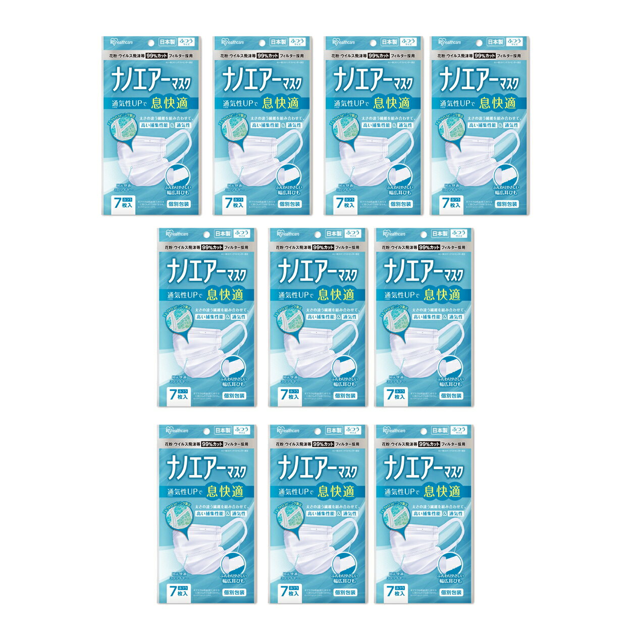 【送料込・まとめ買い×10】アイリスオーヤマ ナノエアーマスク 7枚入×10点セット 日本製 個別包・・・