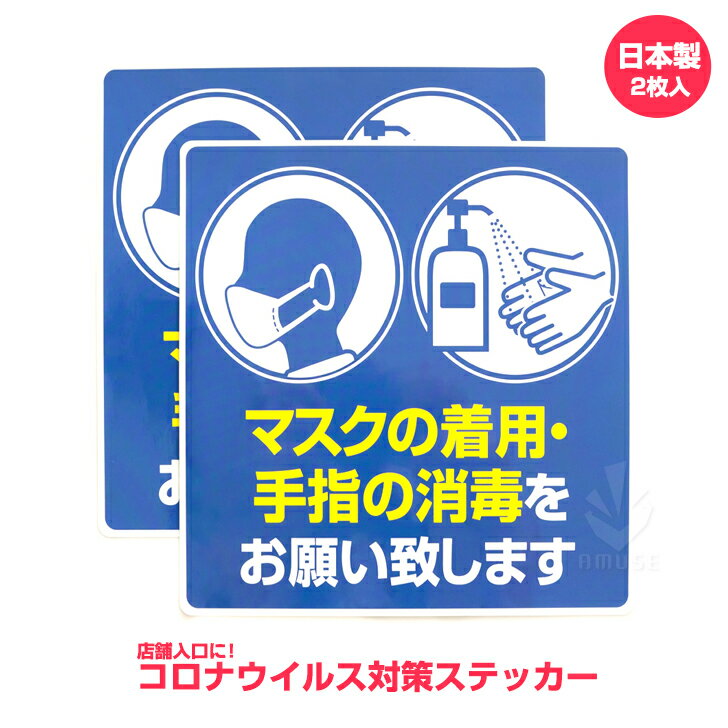 スーパーや飲食店等の入店時のコロナウイルス対策・飛沫感染防止対策のための、マスクの着用・手指の消毒をお願いする コロナ対策 ステッカー。飛沫感染予防 コロナ対策グッズ