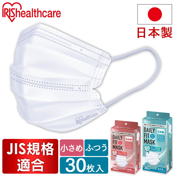 マスク 不織布 アイリスオーヤマ 日本製 デイリーフィットマスク ナノエアーフィルタープラス 小さめ・・・